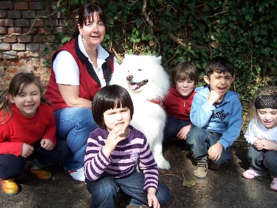Fuchur ist jetzt Helfer auf vier Pfoten und hat viel Spass mit den Kindern.